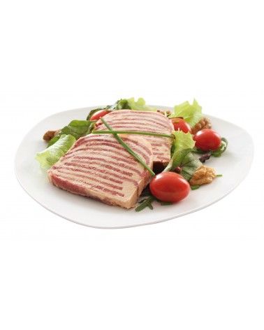 La langue Lucullus: délicieuse spécialité de Valenciennes. La lanque lucullus est un millefeuille de fines tranches de langue fumée et de foie gras.